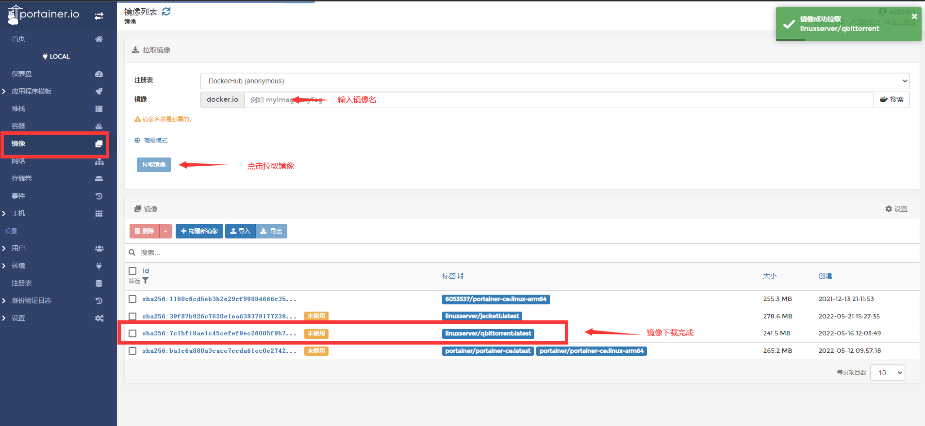 如果会docker命令的朋友,可以直接pull以下镜像,如果不会,可以使用我上一篇文章中写过的Portainer,直接拉取镜像。
