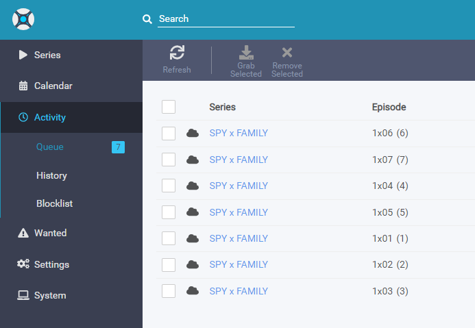 4、打开sonarr,可以看到已经开始对添加的剧集进行索引了