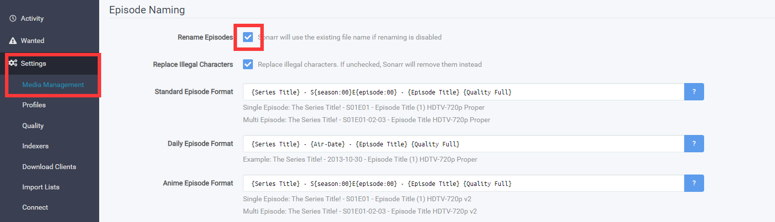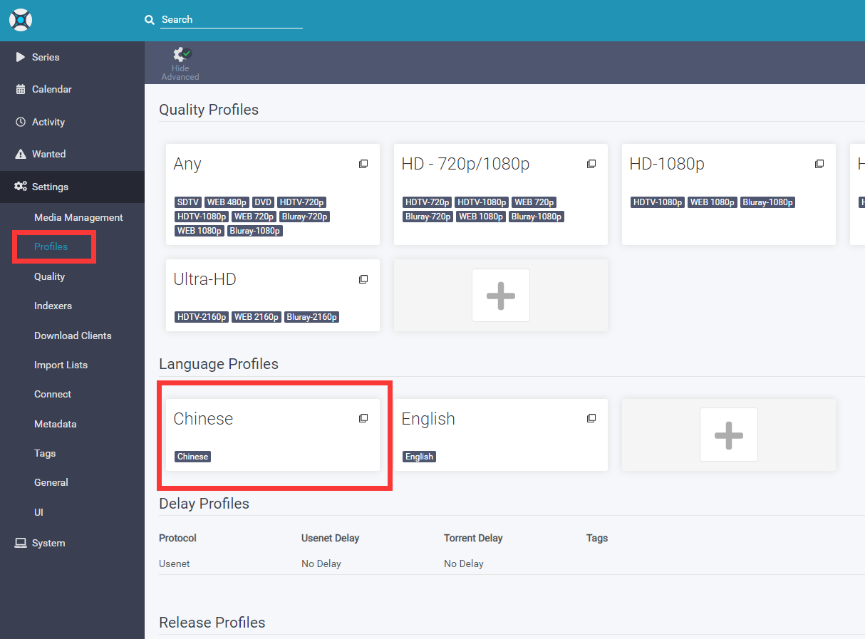 4、由于我们只能通过sonarr下载番剧,因此还需要配置一些radarr不需要配置的内容