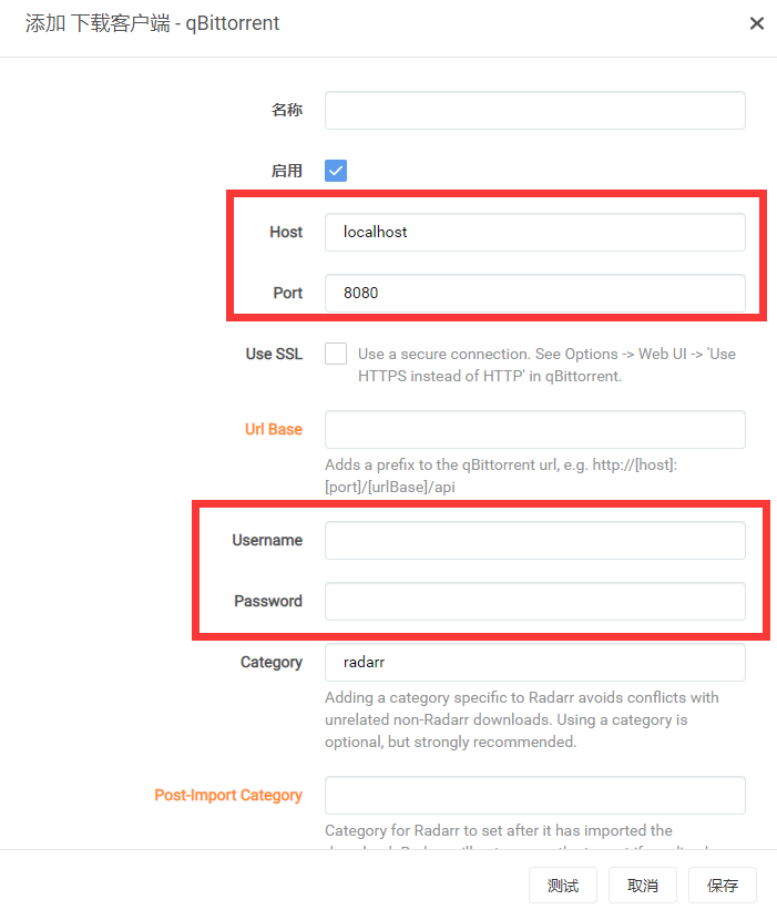 - 进入设置—>下载客户端,添加qb或者tr,填入host和账号密码