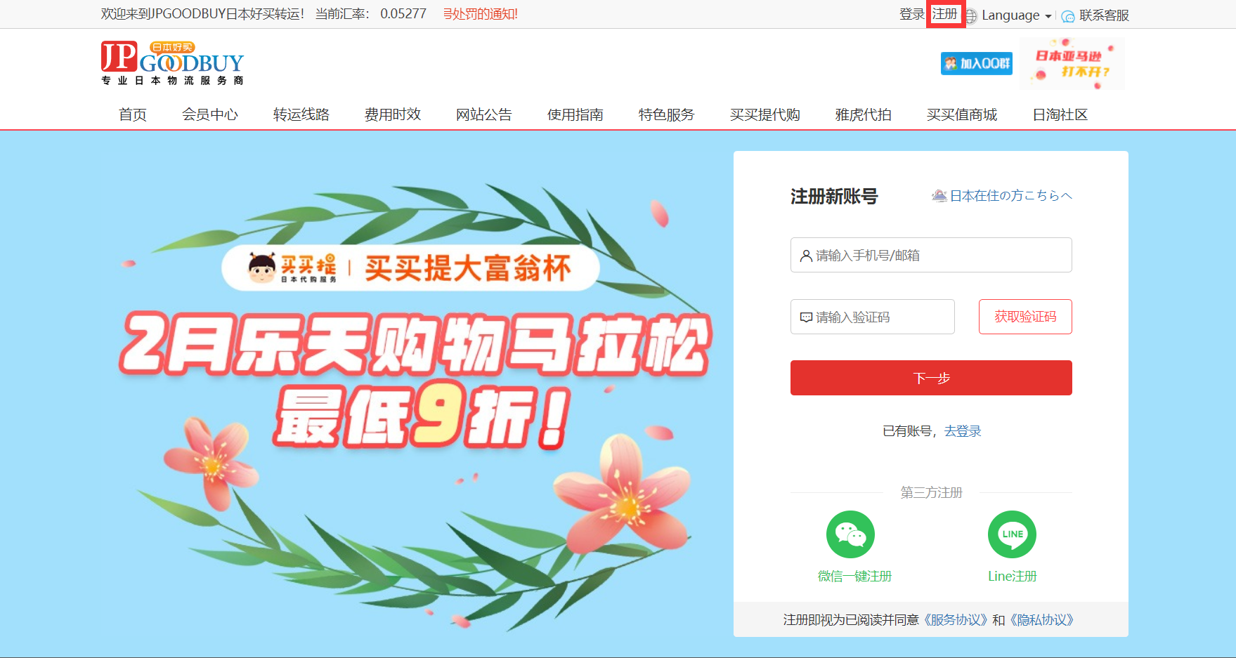 注册过程非常简单,进入日本好买的网站后,点击上方的注册按钮,即可通过手机注册。