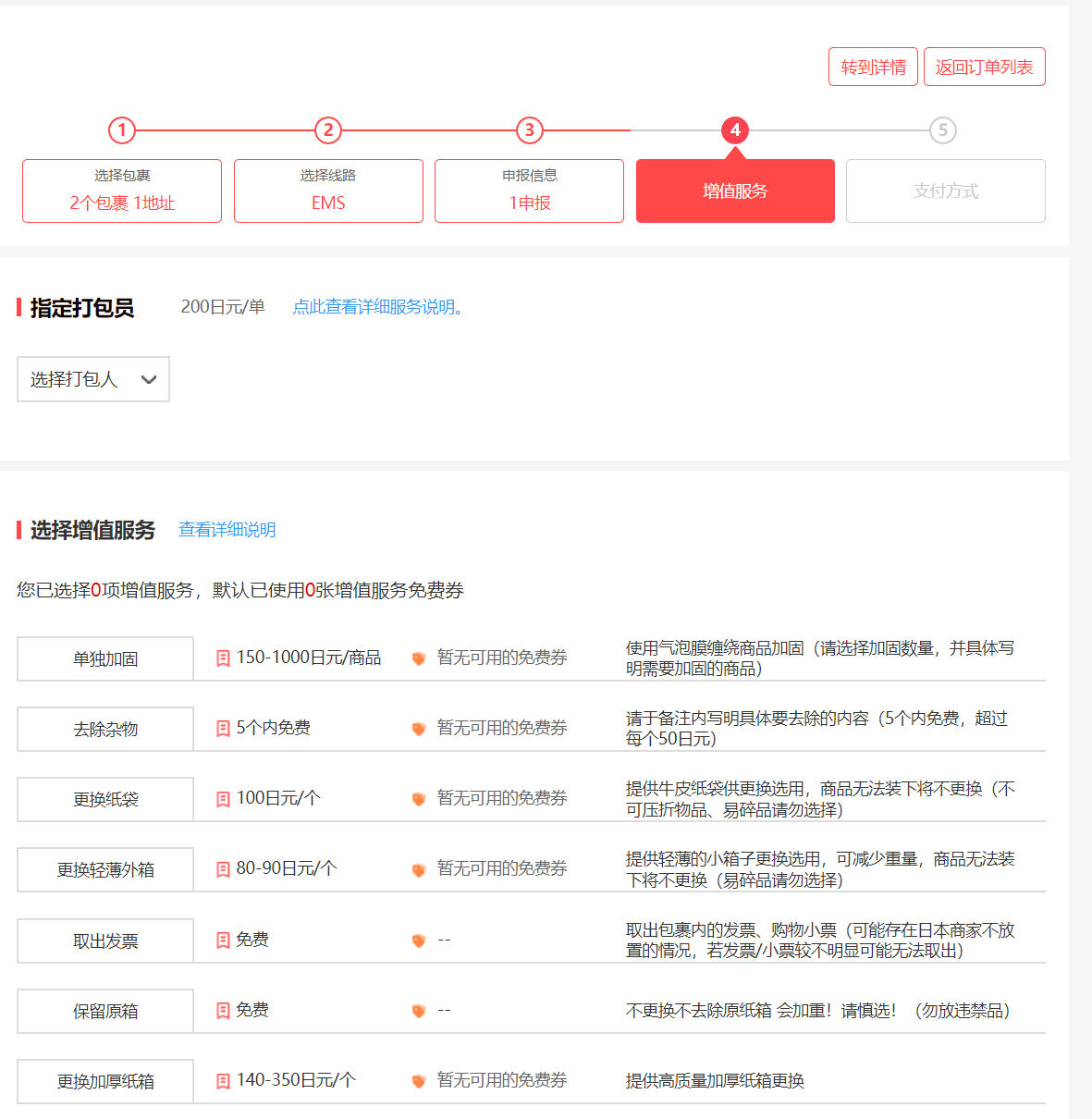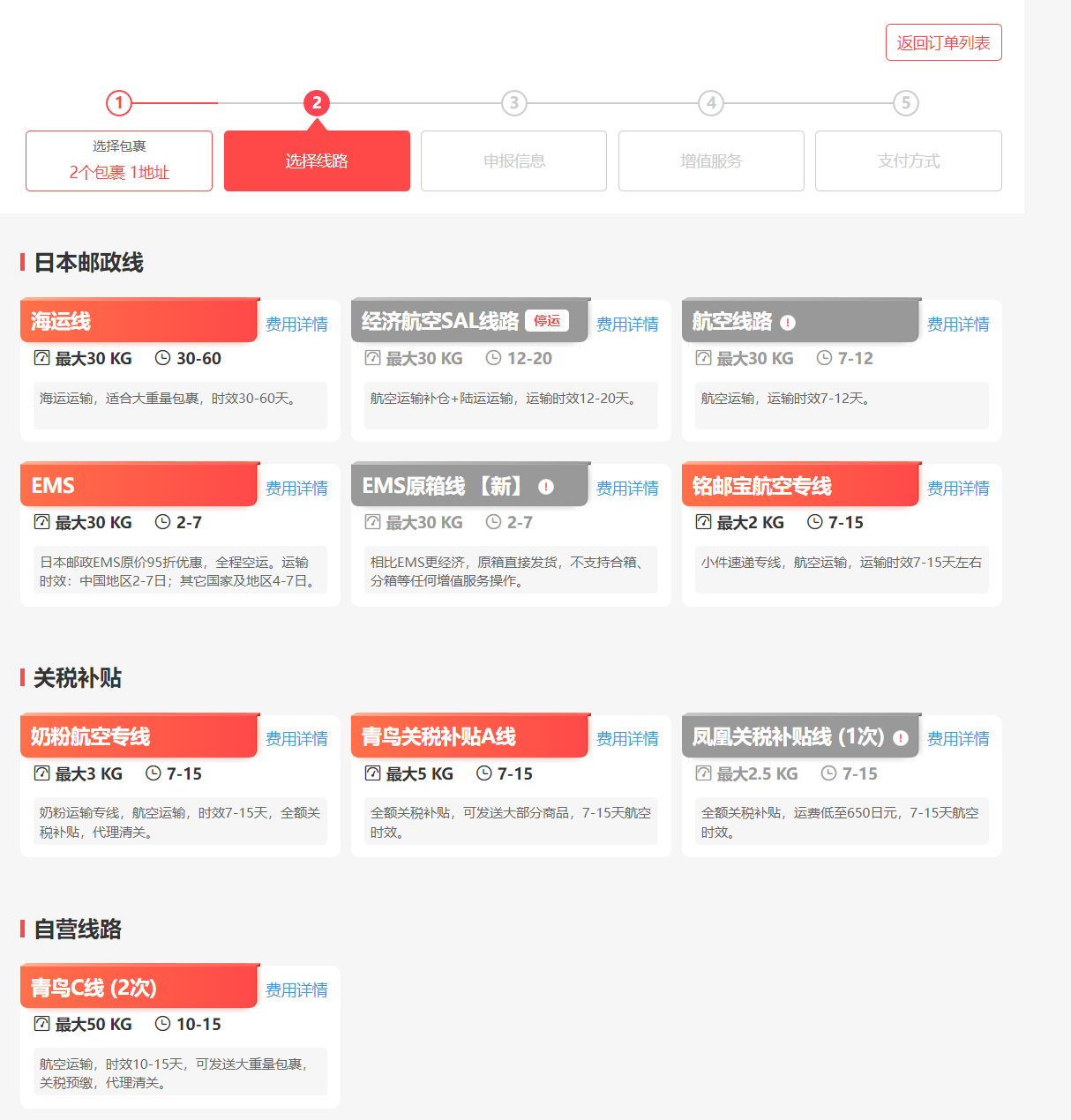 选择合适的转运线路,由于我是第一次购买,不太清楚各个线路的区别,最后选择了EMS(很贵,但是很快)